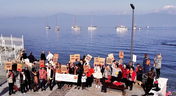 Etkinlik boyunca kadına yönelik şiddetle mücadele pankartları taşıyan katılımcılar, Mudanya halkına şiddet konusunda farkındalıkalarını artıracak broşürler de dağıttılar.