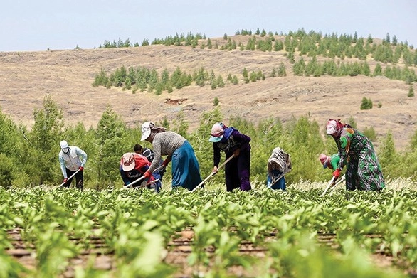 c) Tarla içi modern sulama sistemleri kullanılarak yapılan üretimler.