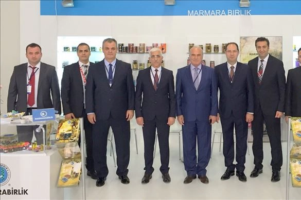 Marmarabirlik standına ziyaretçiler yoğun ilgi gösterirken, konuklara ürünlerin tadımı da yaptırıldı. Fuara katılan Marmarabirlik Yönetim Kurulu Başkanı Hidamet Asa, Yönetim Kurulu Üyeleri Osman Bostancı, Kemal Dinç, İhracat Müdürü Onur Dağlı, Köln Şubesi temsilcisi Süleyman Davarcı, dünya genelindeki bayileri ve ulusal zincir marketlerin temsilcileri ile yeni pazarlar için görüşmeler gerçekleştirdi. Marmarabirlik bünyesinde salamura başta olmak üzere, yağlı seleden kuru seleye, yeşil zeytinin her çeşidinden, doğal fermantasyon yönetimiyle olgunlaştırılmış çekirdeksiz Gemlik tipi zeytine kadar 380 barkodlu ürün bulunduğunu, 62 ülkeye ürün gönderdiklerini ve toplam zeytin satış miktarının yüzde 25’ini ihraç ettiklerini ifade eden Yönetim Kurulu Başkanı Hidamet Asa, geçen yıl 21 milyon dolarlık ihracat yaptıklarını, bu yıl bu rakamı 30 milyon dolara çıkarmayı hedeflediklerini belirtti. Farklı ülkelerdeki ulusal zincir mağazaların raflarında, Marmarabirlik ürünlerinin yer almasının önemine vurgu yapan Başkan Asa, Amerika Birleşik Devletleri’nin perakende satış mağazası Walmart ve son olarak Avrupa’da yaklaşık 7000 mağazası olan marketler zinciri Aldi (Albrecht-Diskont) raflarında olacaklarını ifade ederek, “Aldi’nin Belçika’daki şubelerinde tüketiciler artık Marmarabirlik ürünlerine kolaylıkla ulaşabilecek” dedi. Etnik dışı pazar payını sürekli artırdıklarını söyleyen Asa, Marmarabirlik’in sektöründe 7 kez ihracat şampiyonu olduğunu hatırlatarak,“Marmarabirlik’in geleceği ihracattadır, onun için dış pazar payını artırmak için tüm gücümüzle çalışıyoruz” ifadelerini kullandı.