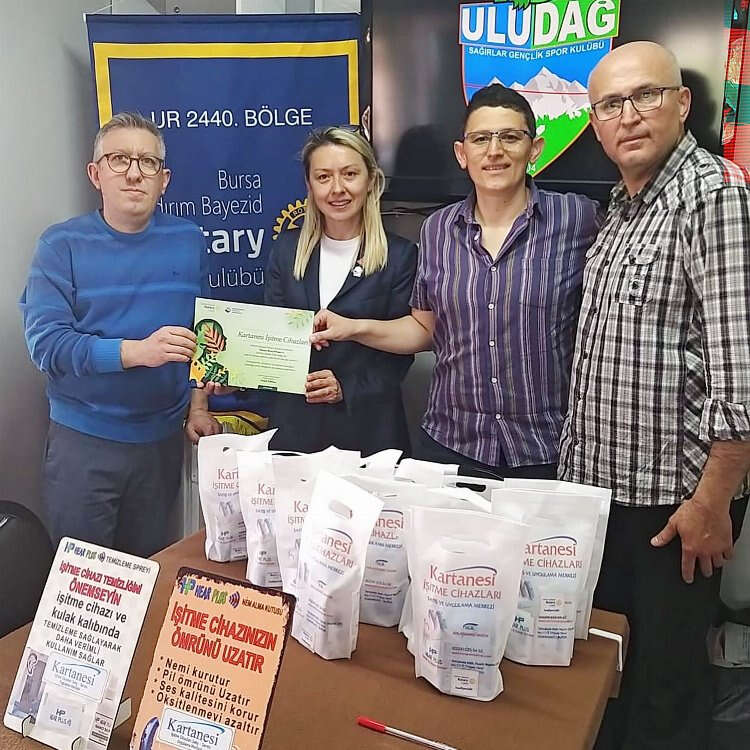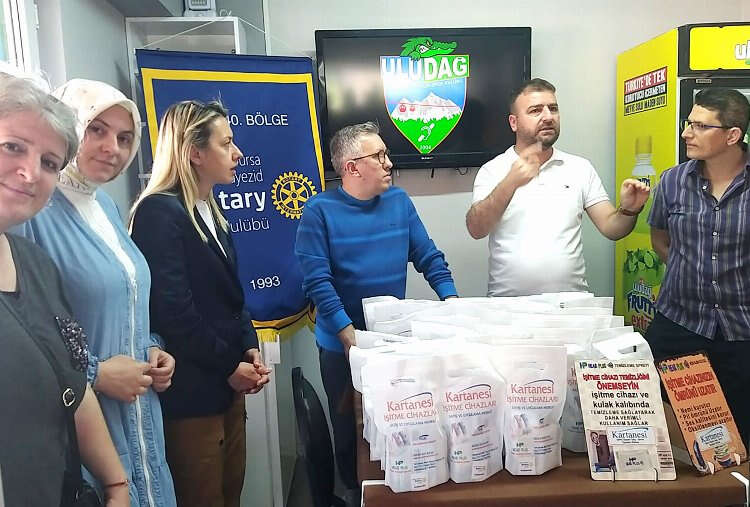 Yıldırım Bayezid Rotary Kulübü, dönem boyunca gerçekleştirdiği çok sayıda hizmete bir yenisini daha ekledi. Bursa Uludağ Sağırlar Gençlik Spor Kulübü Derneği üyeleriyle Reyhan’daki Sessiz Kafe’de bir araya gelen Yıldırım Bayezid Rotary Kulübü Başkanı Ferahi Öztimur, Kartanesi İşitme Cihazları sponsorluğunda 100’den fazla işitme engelli bireye işitme cihazı temizlik ve bakım seti hediye etti. İşitme cihazlarının daha uzun soluklu kullanımına olanak sağlamak amacıyla kullanılan setleri ilgiyle karşılayan işitme engelli bireyler adına Dernek Başkanı Musa Kızak, Yıldırım Bayezid Rotary Kulübü Başkanı Ferahi Öztimur’a destekleri teşekkür etti. Öztimur ise, engelli bireylere destek olmak, hayatlarını kolaylaştırmak adına projelerinin süreceği mesajını verdi.