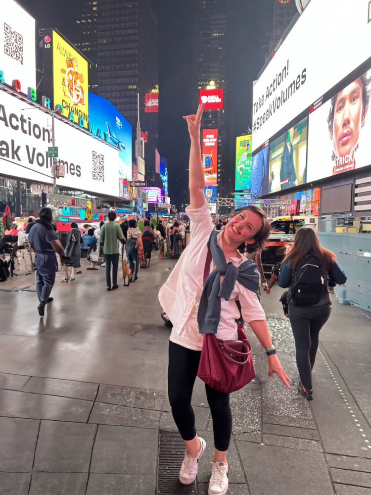 Times Meydanı dev bir sahne gibi.Her yer ekran ekran ekran. Dünyanın ritmini burası tutuyor bence. Truman Show’dasın ve tüm dünya seni izliyor sanki.Biranda devleşiyorsun ve dünya gözünde küçülüyor.Bir cesaret geliyor o anda ve herşeyi yapabilirsin herşeye ulaşabilirsin motivasyonu aktive oluyor.İşte bu his çok kıymetli.Yaratıcılığın canlı canlı reçetesini hissettim içimde. Merak,harekete geçmek ve cesaret. Dünyaca ünlü markalar bolca reklam yayınlıyorlar Times Meydanı’nda.Bütün olay insanı etkilemek olduğu için ve karar verme mekanizması da duygulardan geçtiği için “neyi” değil “niye yaptığını” anlatan markalar bir adım öne çıkıyor.Doğru bir reklam stratejisi ile markanı göklere çıkarabilirsin bu meydanda.Aranılan zirve burası sanki.